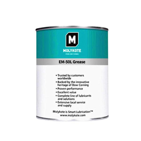 Molykote EM-50L is a PAO-based grease with NLGI 1 consistency, density 0.84 g/cm³, base oil viscosity 1,050 mm²/s@40°C. Engineered for noise reduction in plastic components within -40°C to 150°C environments.